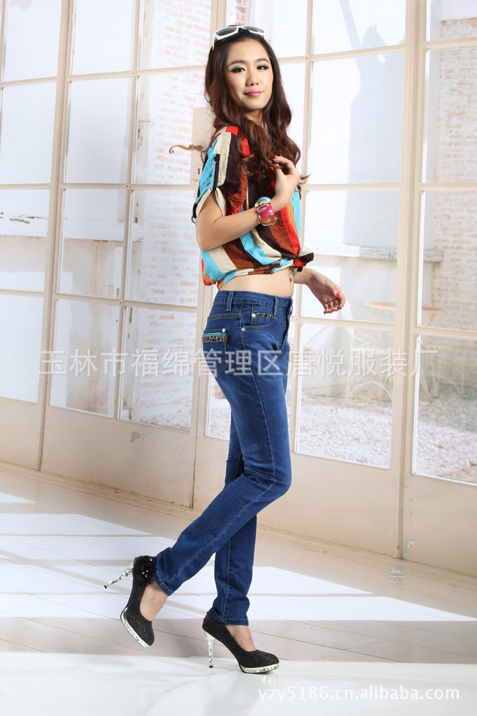 牛仔长裤,中蓝色牛仔裤,女式长裤,厂家直销