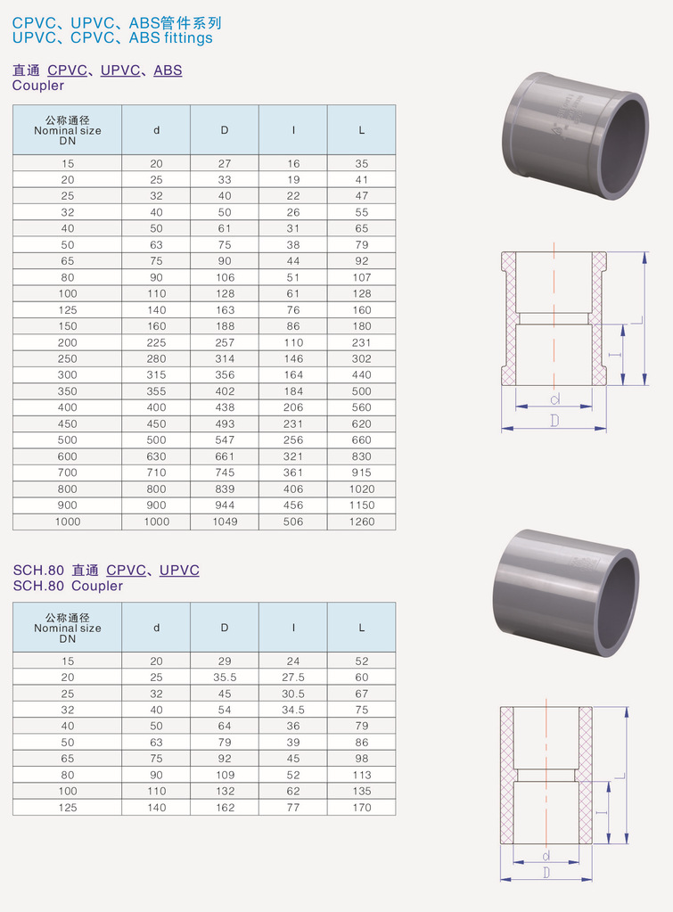 CPVC、UPVC、ABS直通,SCH.80 直通