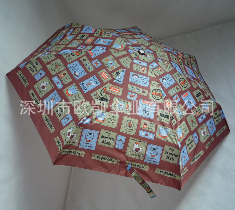 迷你五折七开超轻伞 卡通小动物图案满版印刷礼品伞