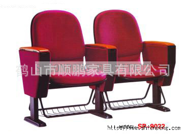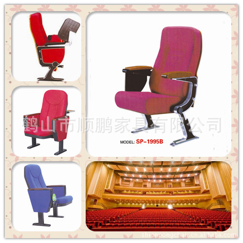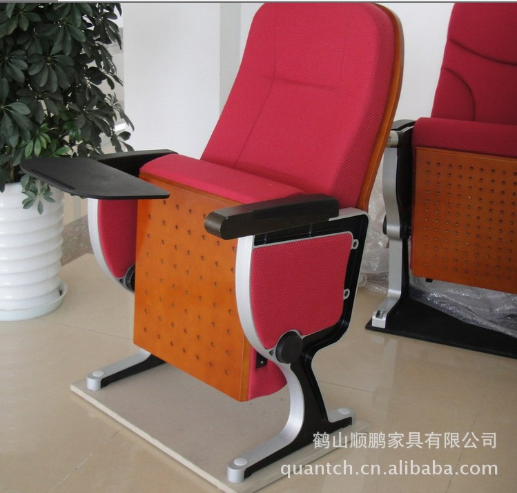 高档铝合金礼堂椅-铝合金脚、实木扶手、360度旋转写字板