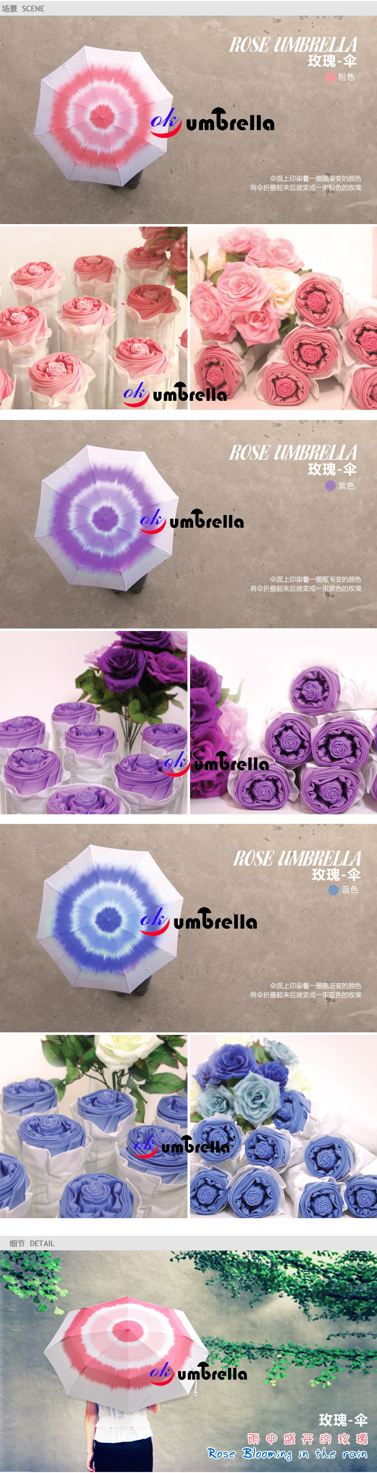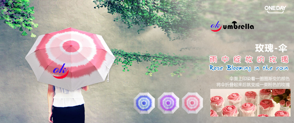 深圳雨伞厂家 欧凯伞业 三折创意礼品女士玫瑰花伞