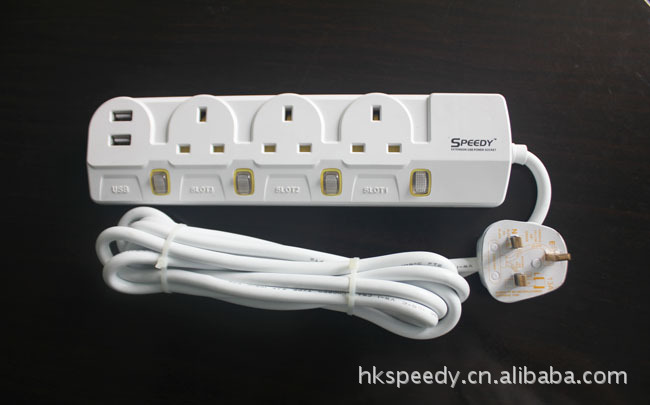 香港SPEEDY多功能插座英规13A带独立开关USB AC电源组合插座