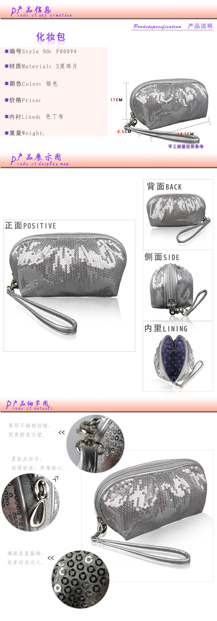 广东 深圳化妆包专业生产加工厂 批发3厘珠片银色 精美时尚化妆包
