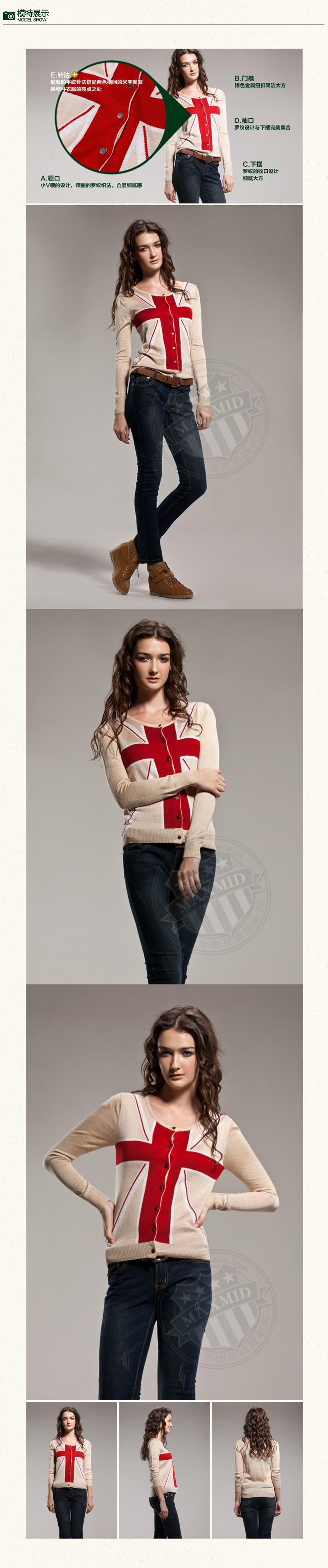 MAXMID新款英伦学院风薄款米字圆领开衫女式针织衫批发MMCZ022