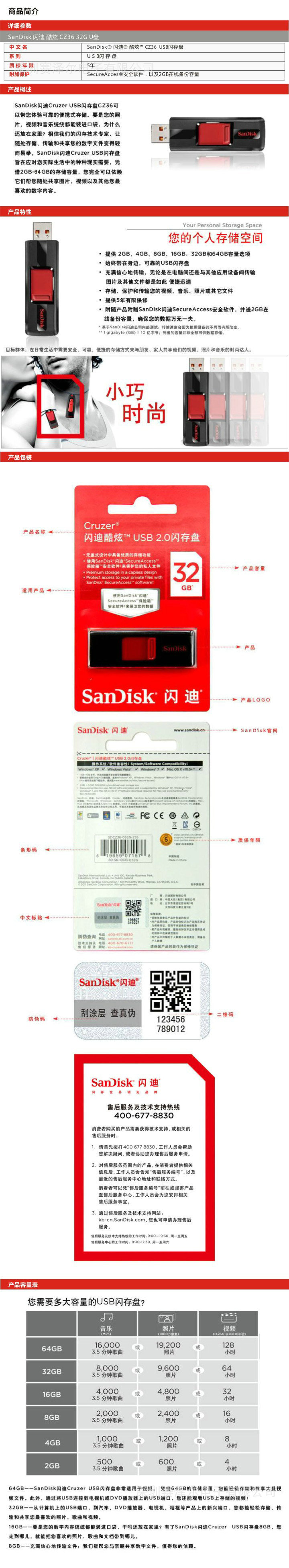 批发闪迪sandisk 酷炫 CZ36 USB闪存盘 32G U盘 创意U盘 正品
