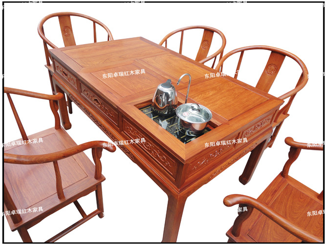 卓瑞红木家具茶台,缅花茶台6件套,大果紫檀家具,缅甸花梨家具