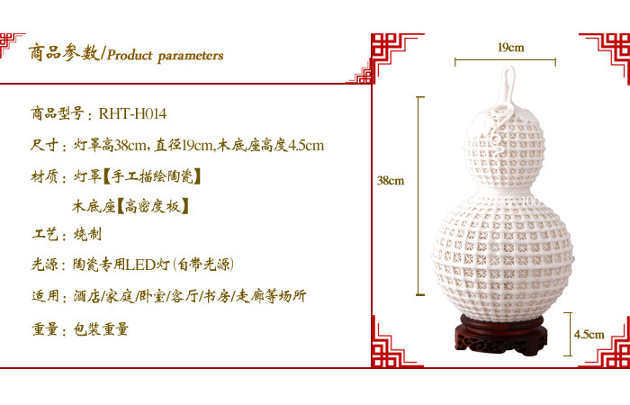 批发、零售陶瓷灯 瑞海通-- 镂空葫芦瓶 RHT-H014