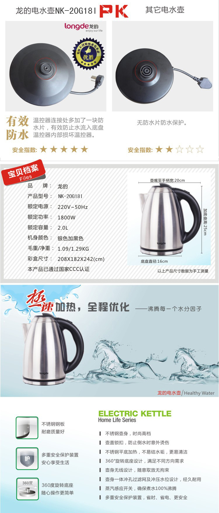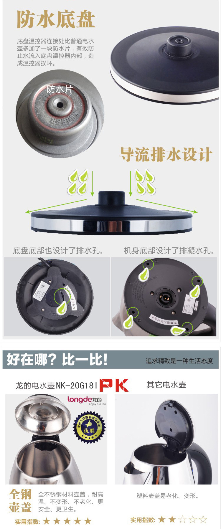 龙的 电水壶NK-20G18I 电热水壶 防水节能不锈钢2L 正品特价
