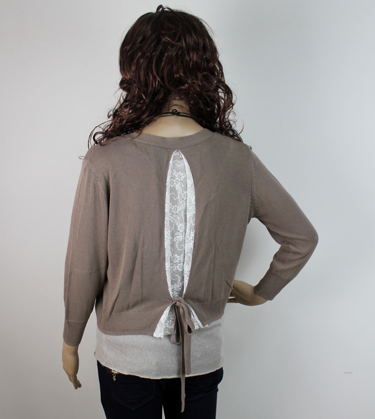 初秋新款上市 XY005 短款针织开衫背部系带 蕾丝网设计