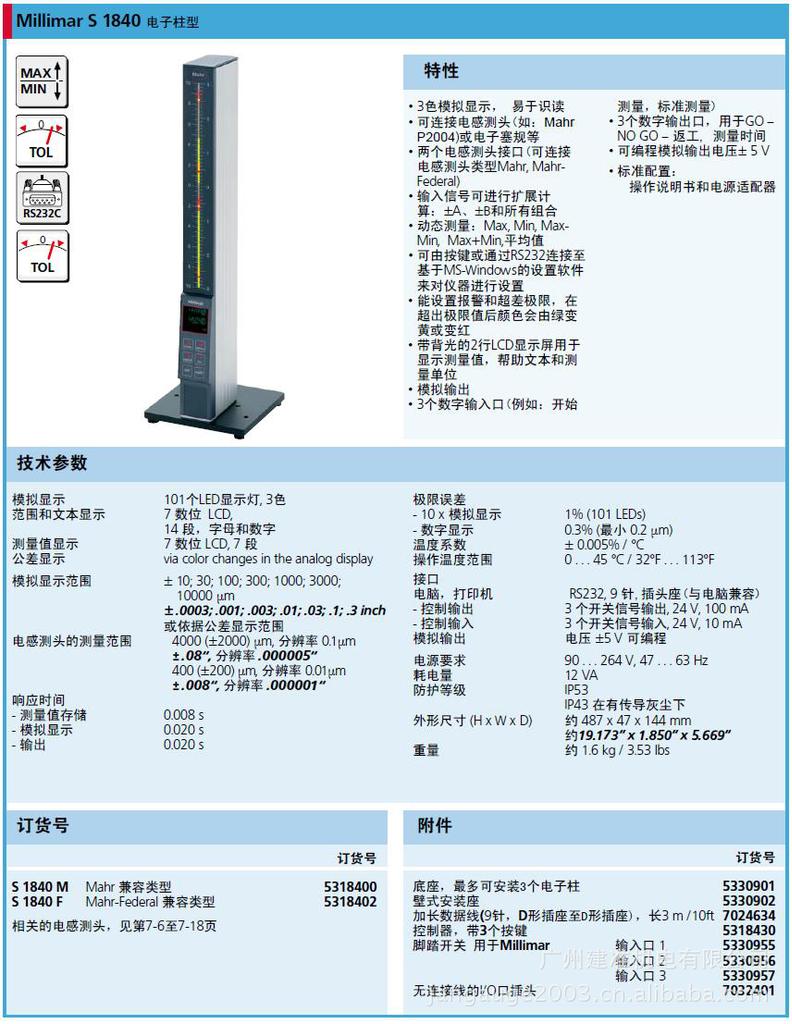 德国Mahr薄膜测厚仪S1840(电子柱型)