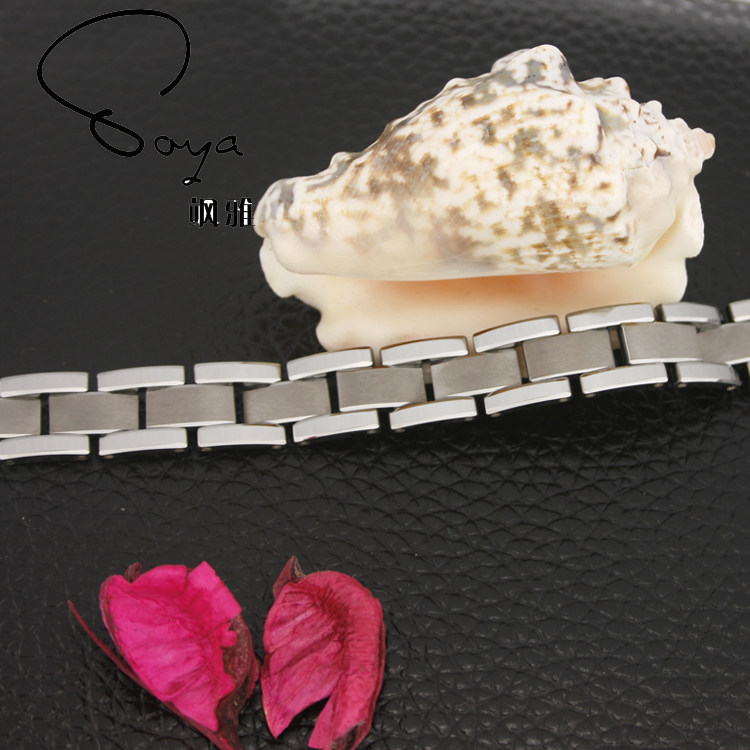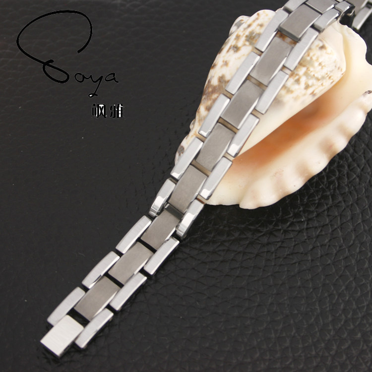 Saya 正品 钨金拉砂复古男士手链 镶八心八箭锆石 手链 S010