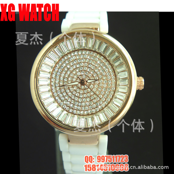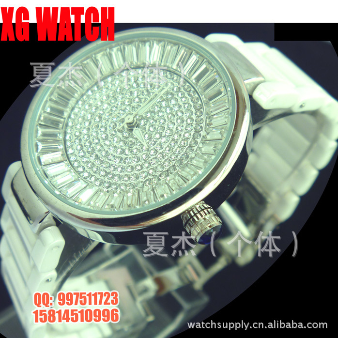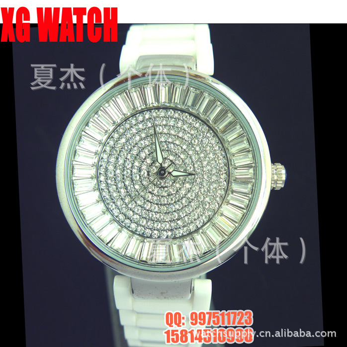 2012新款 满天星水钻女式手表 方钻陶瓷表 品牌手表同款 镶钻女表