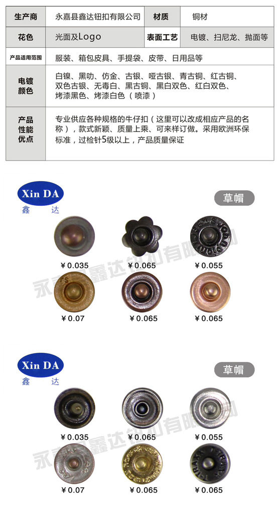 金属钮扣 供应草帽_02 鑫达钮扣厂家直销