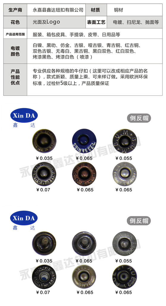 金属钮扣 供应倒反帽_02 鑫达钮扣厂家直销