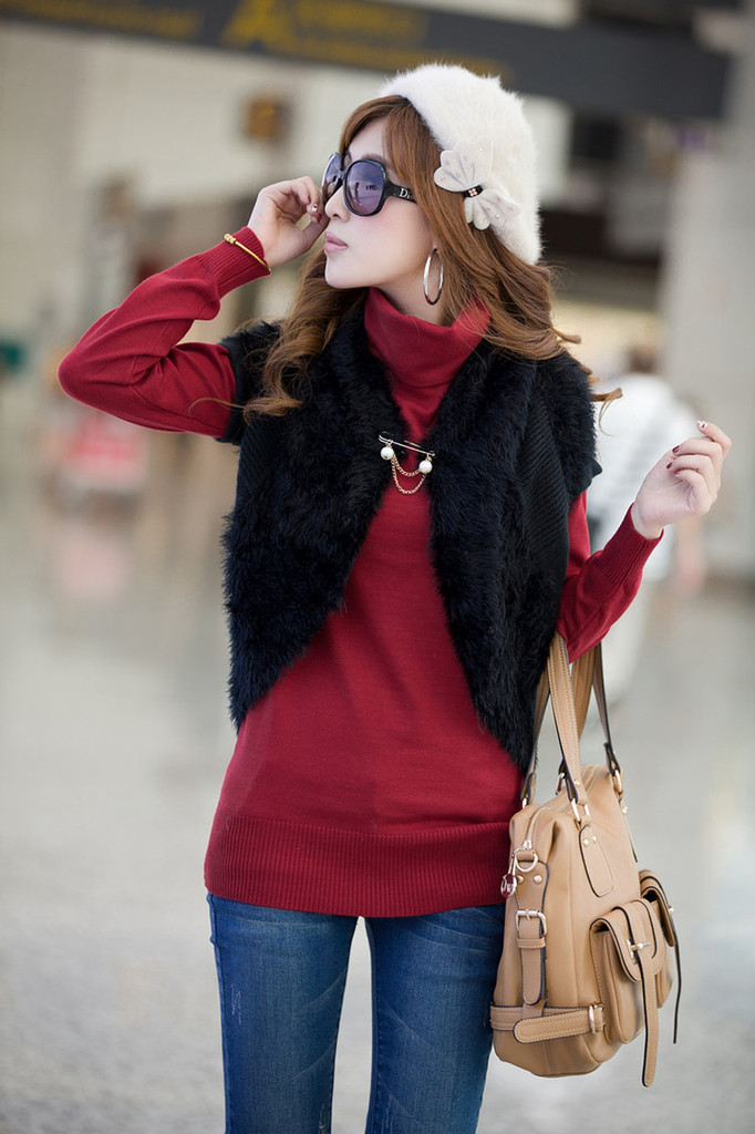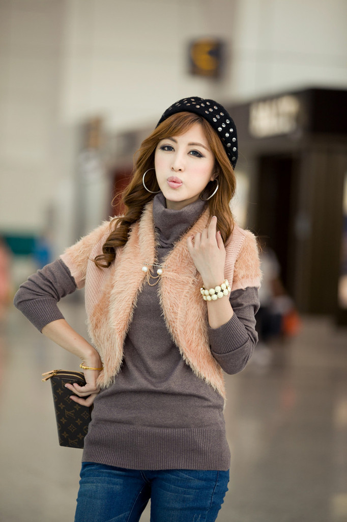 2012韩版秋冬新款貂绒披肩百搭外套短袖针织衫加厚羊毛衫