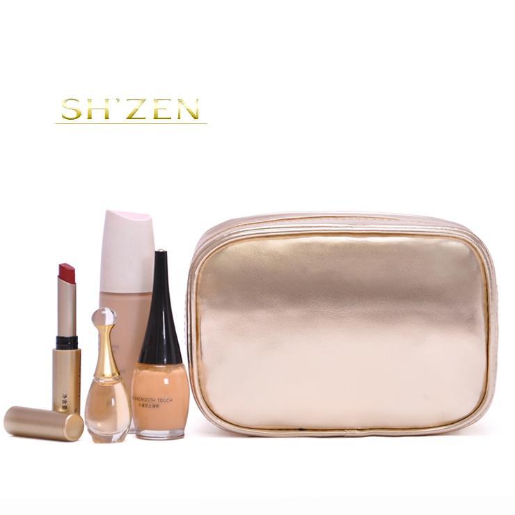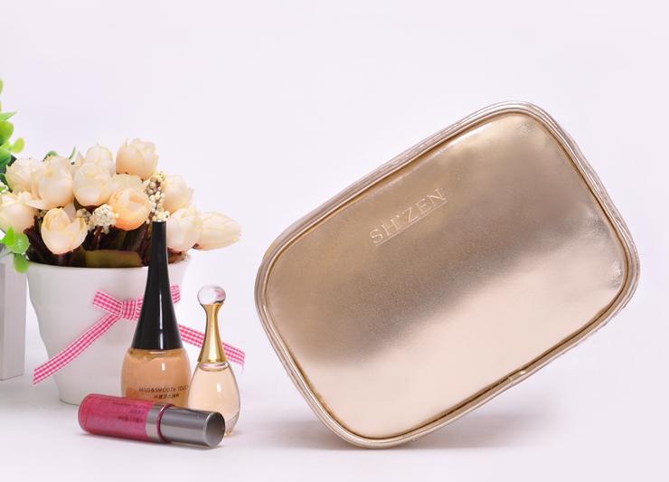 D126定做香槟色PVC化妆包/女士新款珠光PU化妆包/礼品化妆包