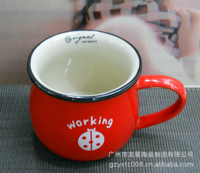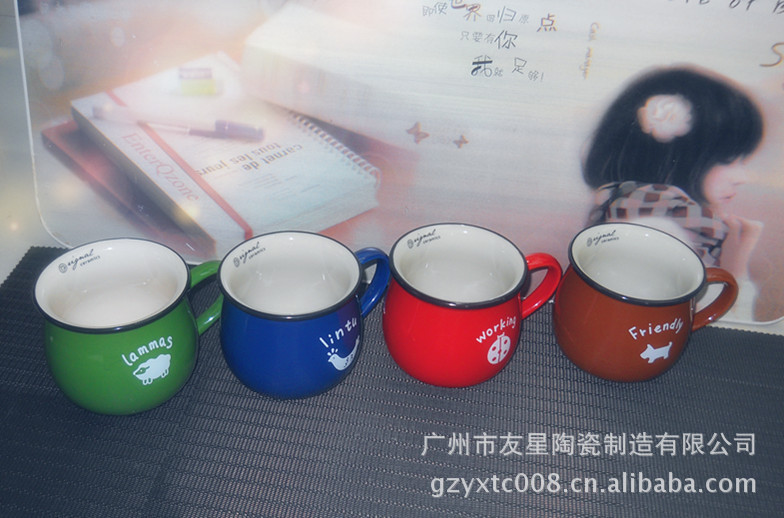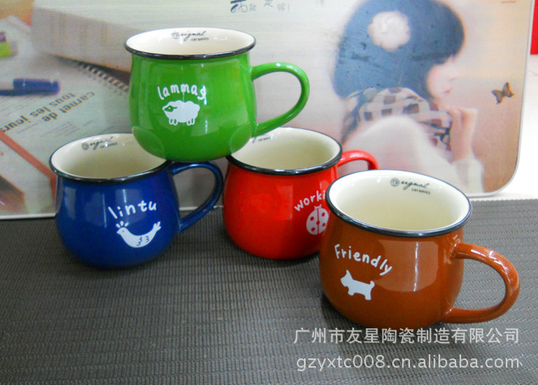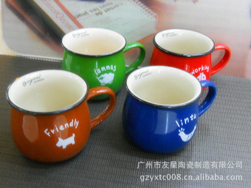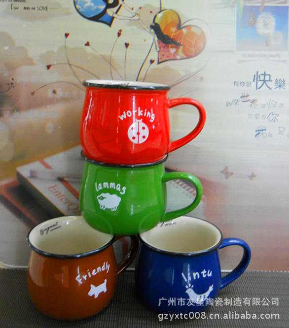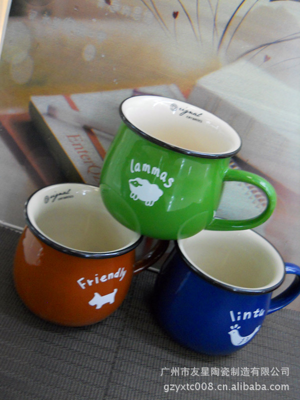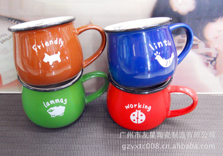 陶瓷杯生产厂 友星陶瓷 定做陶瓷手绘浮雕杯 奶牛杯 礼品浮雕杯
