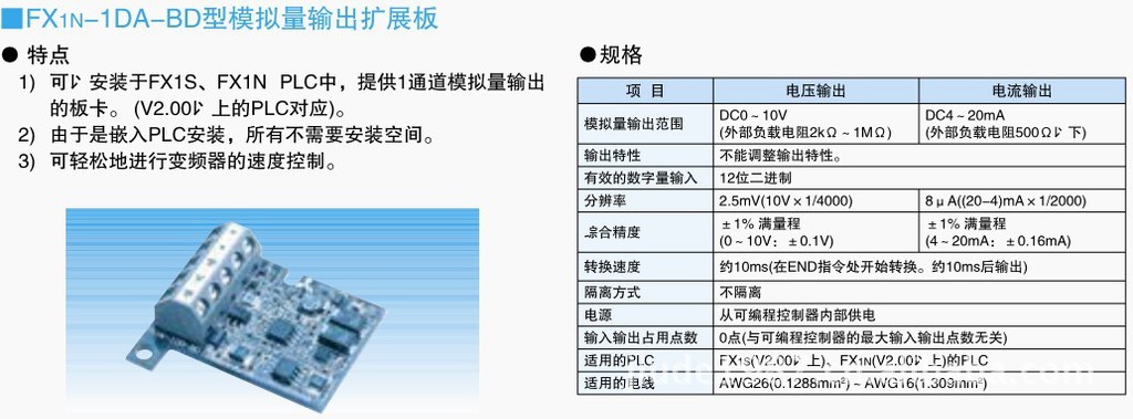 三菱全新原装模拟量输入扩展板:FX1N-1DA-BD