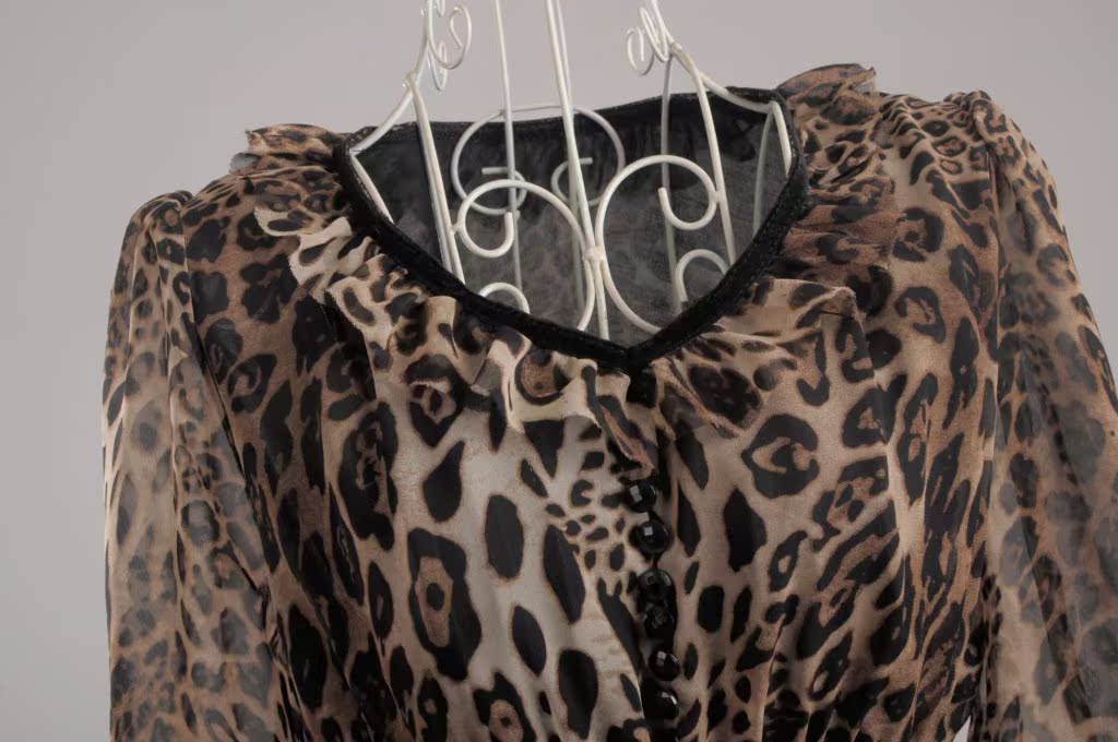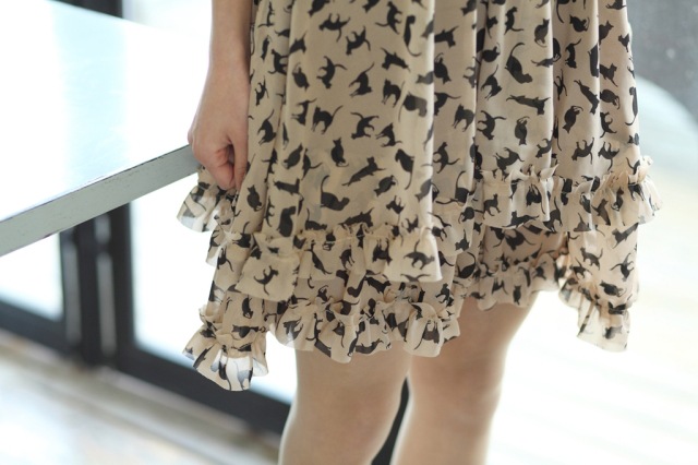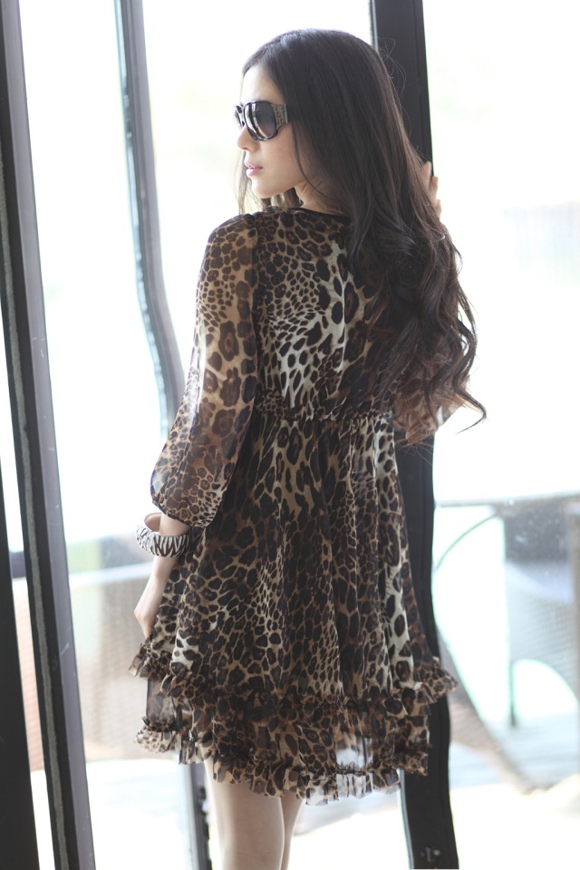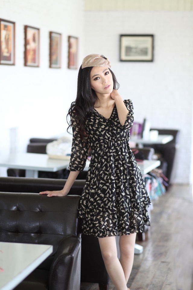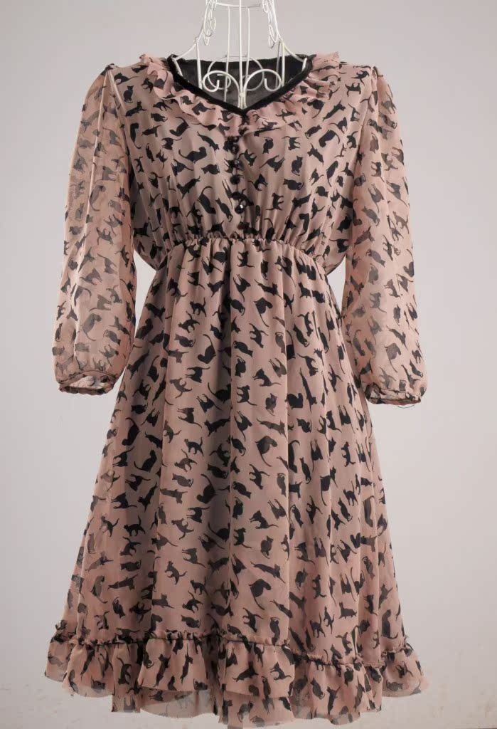 代理2012春夏新款Q801日韩时尚印花荷叶边雪纺中袖连衣裙
