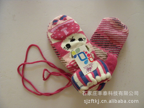 厂家直销!221新款保暖针织兔子双层挂绳加厚女士手套批发