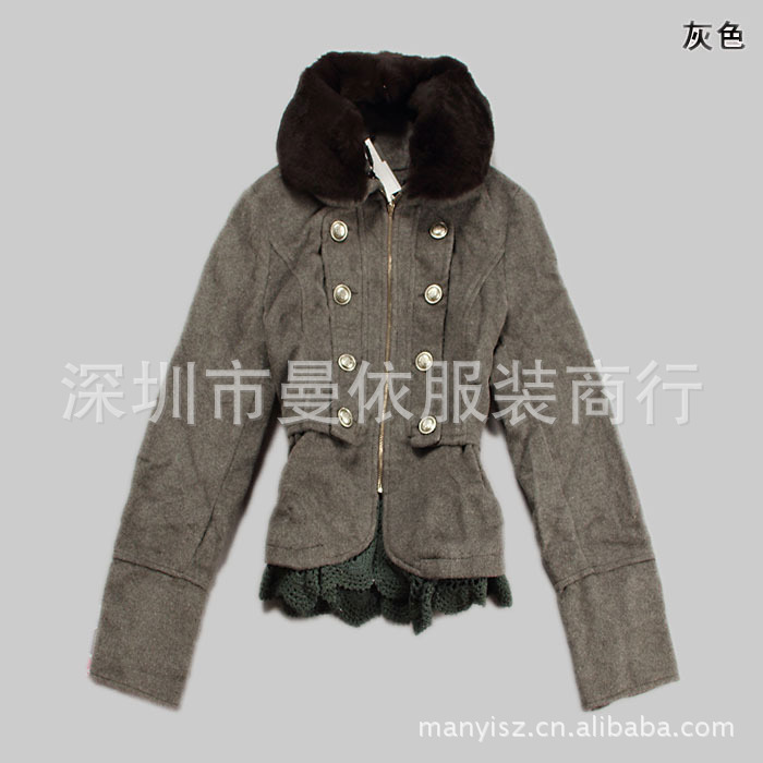 品牌折扣仿真毛领尼子外套 秋冬厚外套批发 韩版女装批发1013079
