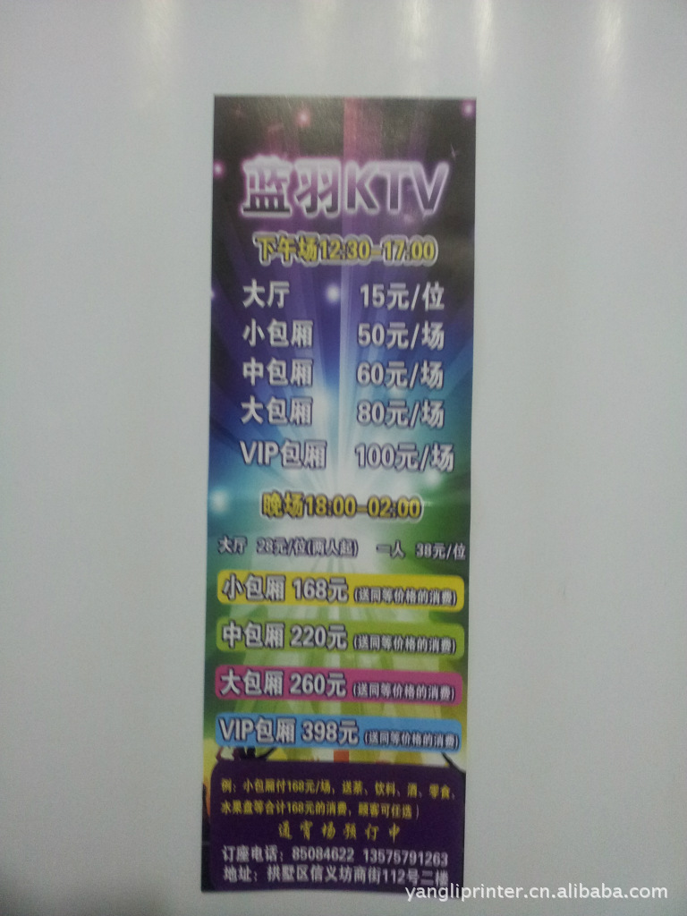 ktv价目表印刷定制,中秋节促销推广,欢迎电话咨询!