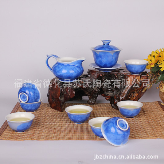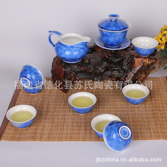 厂家直销 千窑一品 10头蓝色丰韵结晶釉功夫茶具套组 送礼佳品
