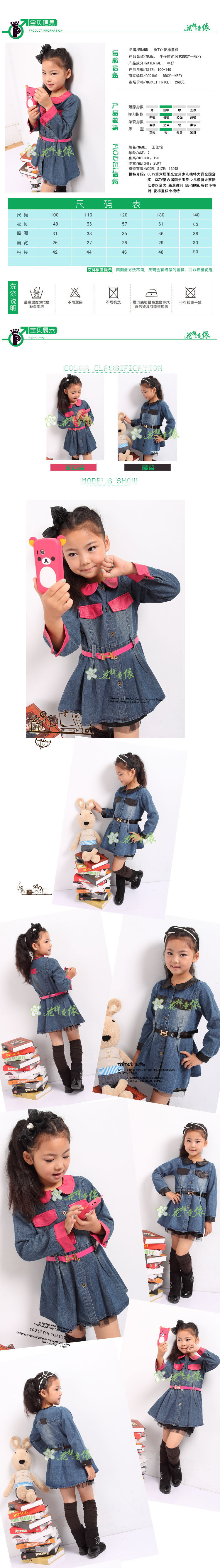 2012韩版时尚 秋款 女童牛仔风衣 中大童 风衣外套