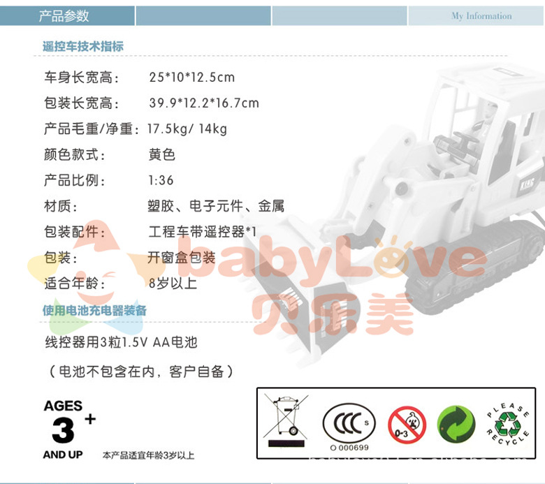 瑞诚1:36线控仿真声音履带推土机/装载车/工程车 270度旋转 699