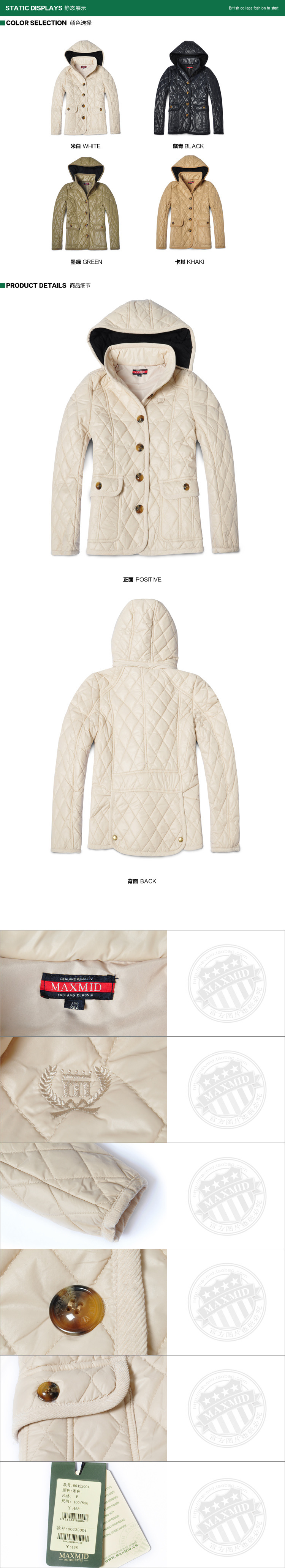 MAXMID新款冬装英伦学院风女式连帽棉衣批发00422004