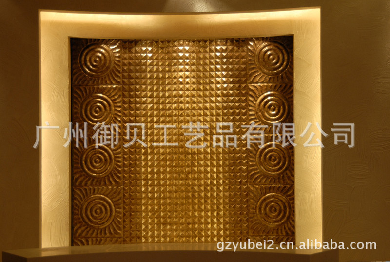 厂家直销 低碳环保贝壳装饰板材金色镜贝云圈造型波浪板