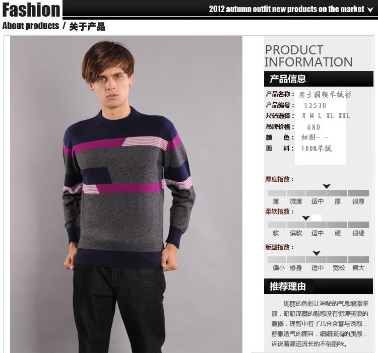 2012秋冬新款羊绒衫 沐春人圆领山羊绒衫 量身定做 针织衫 毛衣