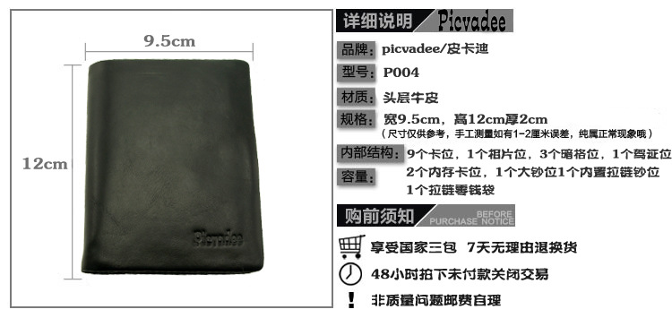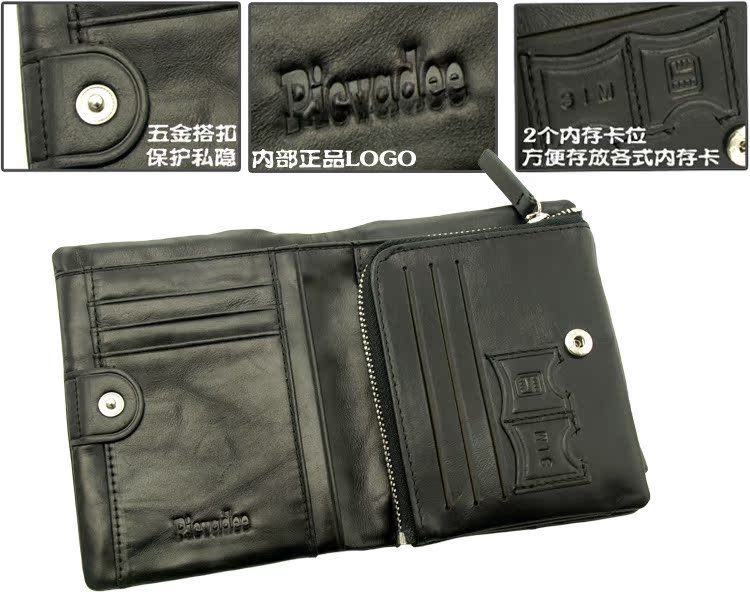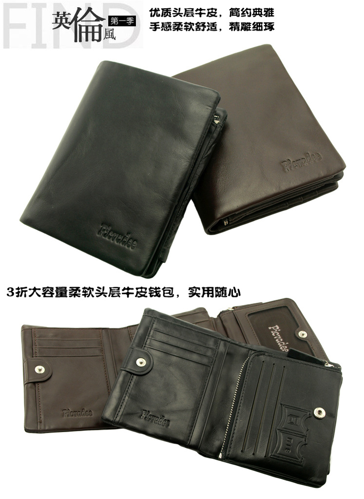代发全套直供 男士油蜡皮钱夹竖款 商务牛皮真皮拉链搭扣钱包P004