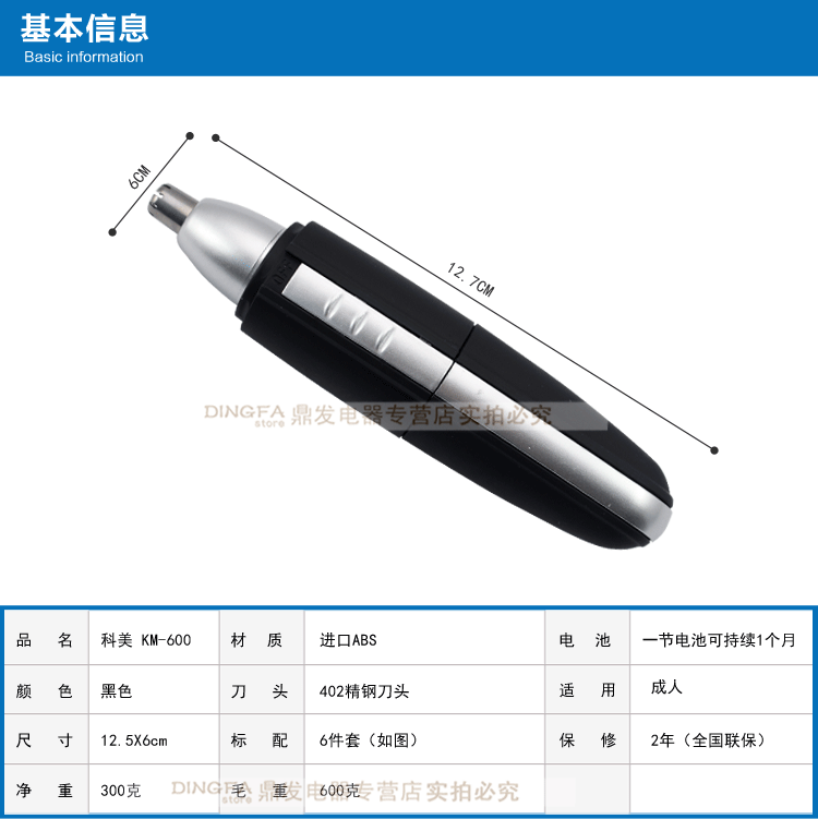 科美600多功能防水鼻毛修剪器电动鼻毛修剪机鼻毛剪鼻毛刀带鬓刀