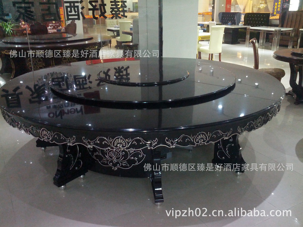 臻好酒店实木雕花 异域风情餐桌 电动餐桌 厂家供应