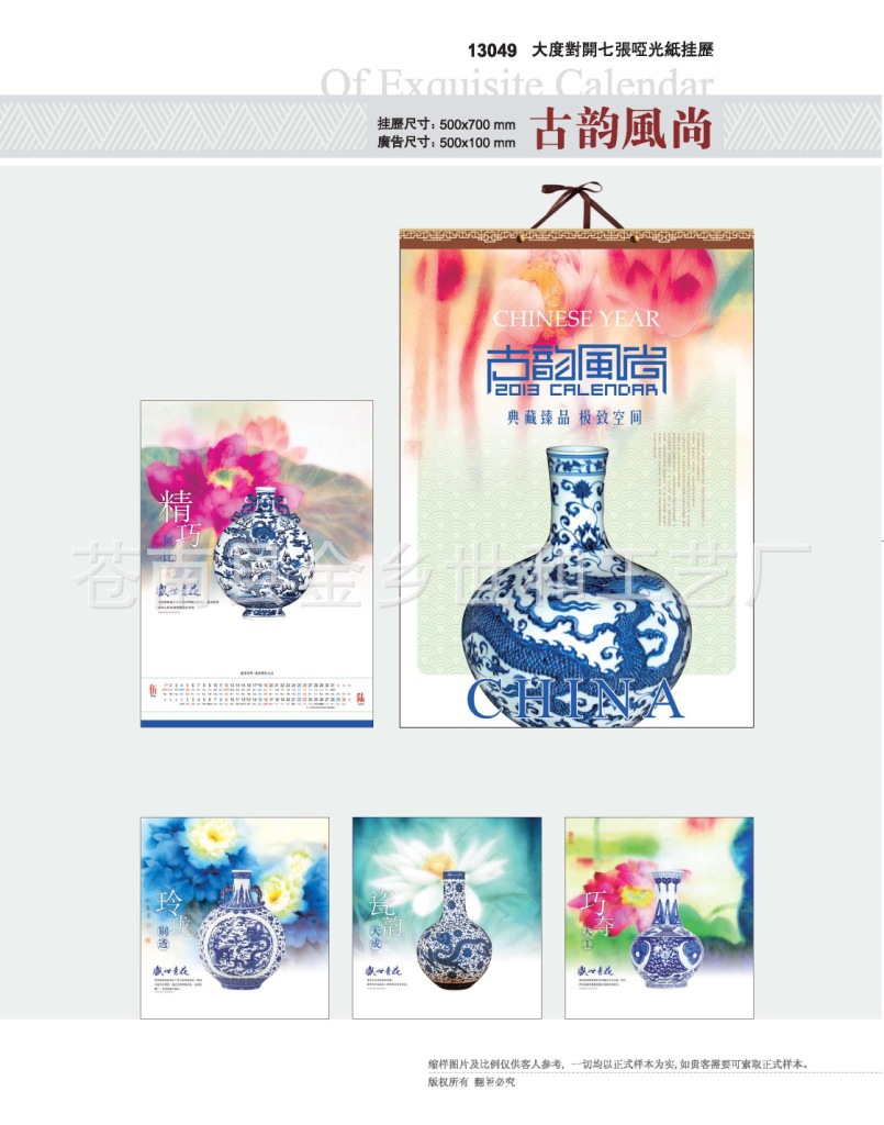 国学七张哑光纸挂历 2013挂历 厂家直销超低价格