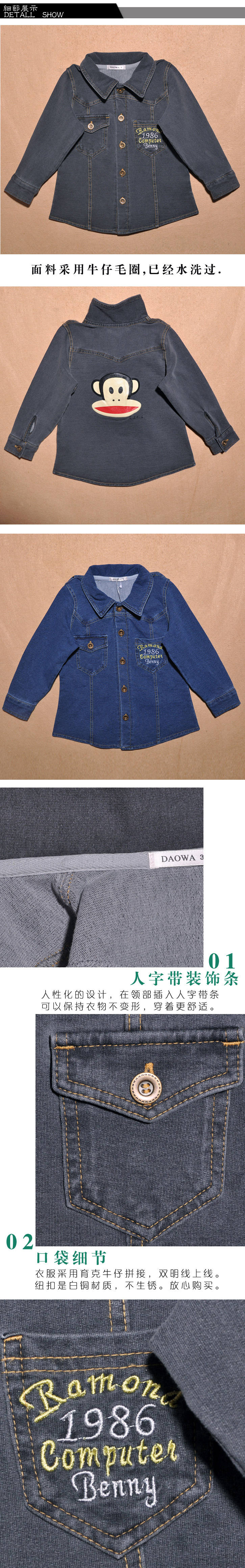 厂家生产秋冬款 大嘴猴儿童牛仔外套 韩版儿童上衣批发1A4232
