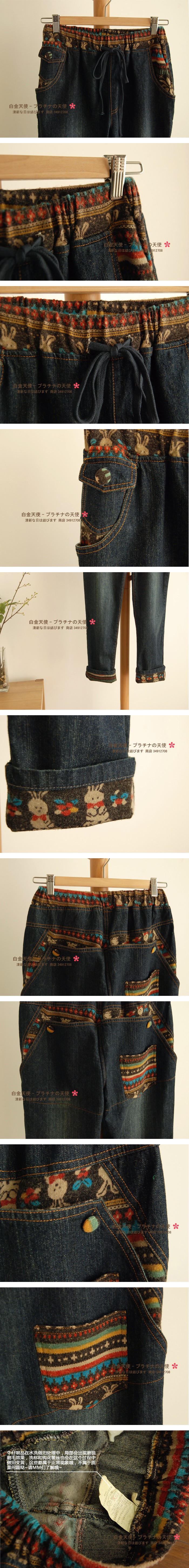 超可爱森女针织雪花小白兔 宽松休闲裤 牛仔裤 日系秋冬新款