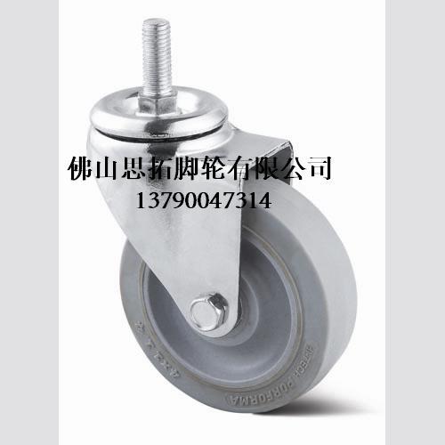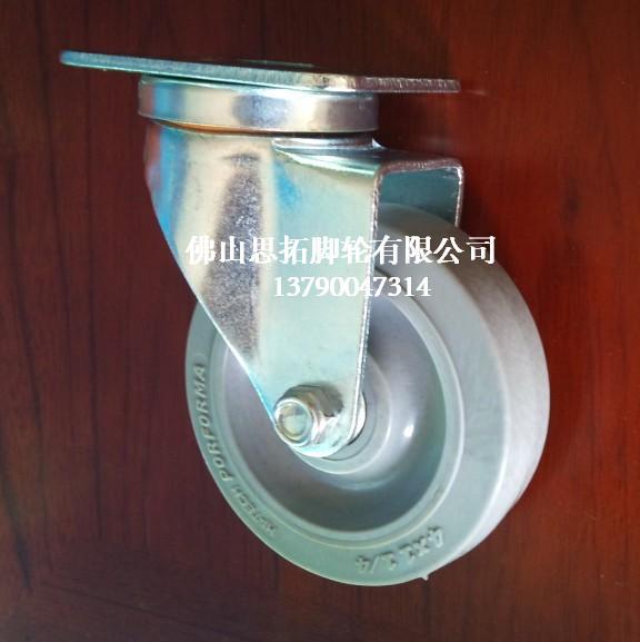 4寸灰色平边人造胶万向轮,弹力橡胶轮,佛山航空箱万向轮