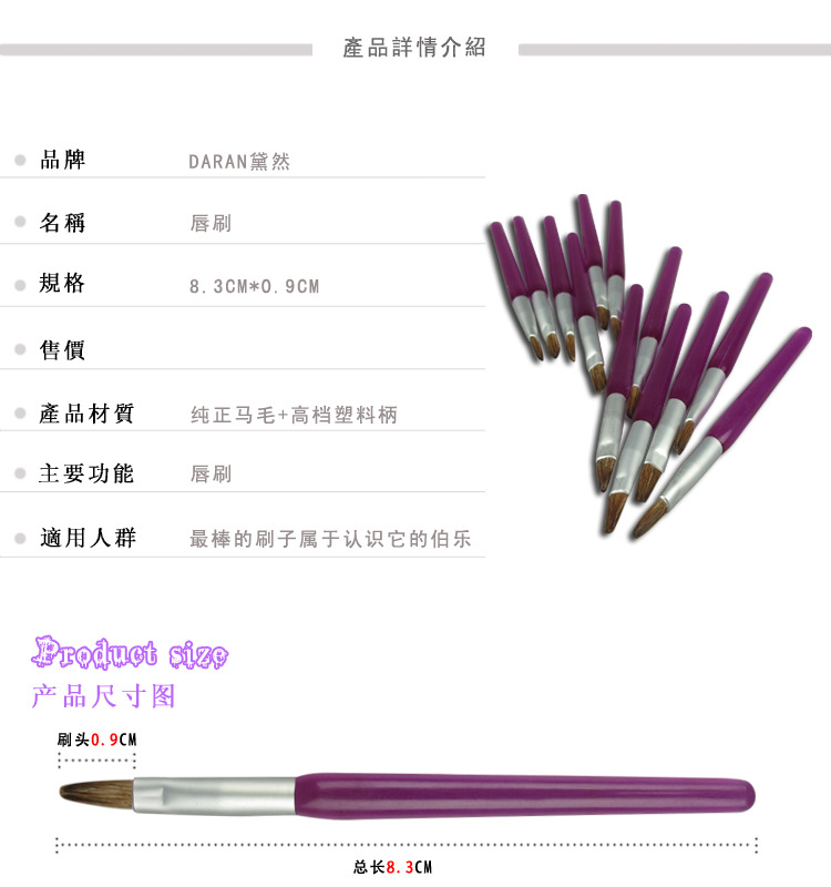 广东 深圳化妆刷生产批发厂 供应加工纯正马毛 高档塑料柄 唇刷