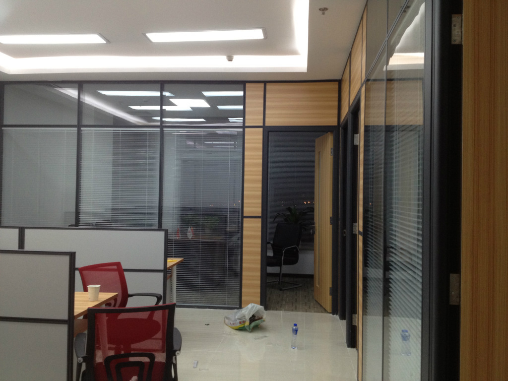 西安办公室铝合金中空百叶 透明磨砂钢化玻璃隔音成品高隔断墙