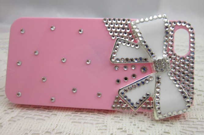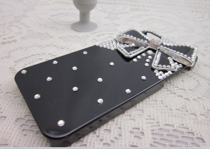 iphone5 镶钻蝴蝶结外壳 手机壳 iphone5珍珠蝴蝶结外套 钻壳