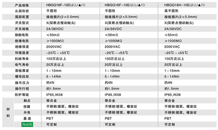 红波按钮 门铃按钮 环形带灯HBGQ16F-10E/J