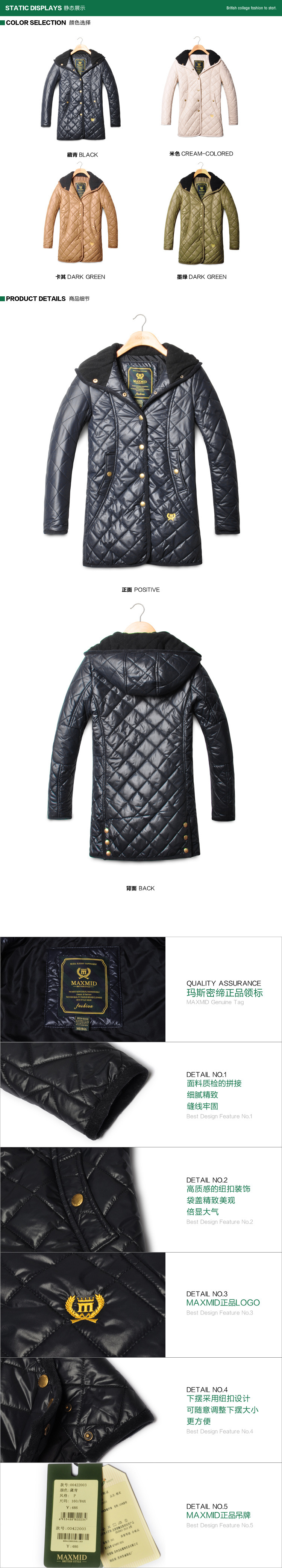 MAXMID新款冬装英伦学院风女装中长款保暖棉衣批发00422003