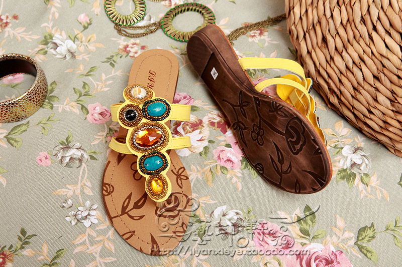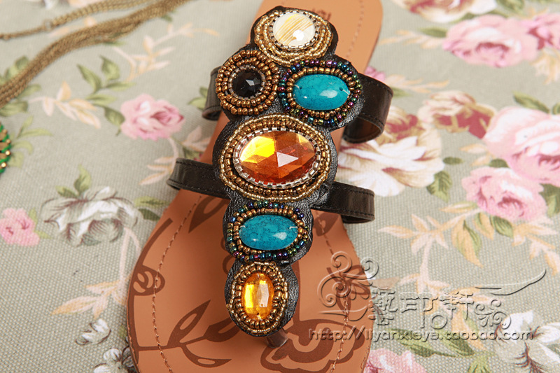 手工罗马鞋 坡底 凉鞋拖鞋 串珠 水钻平底女凉鞋 一件代发