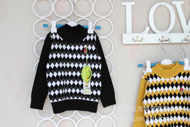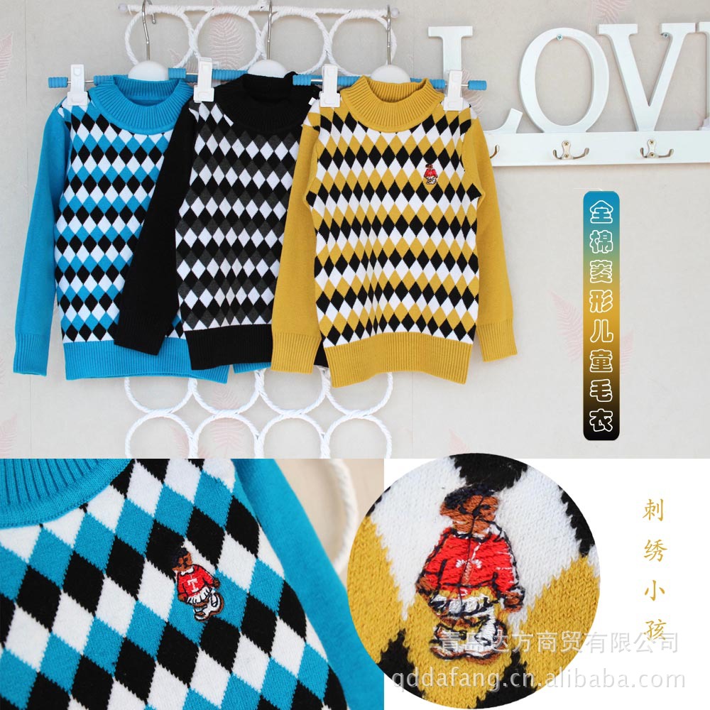 冬季新款精品童装 韩版 针织儿童全棉纯棉小菱形刺绣毛衣 批发