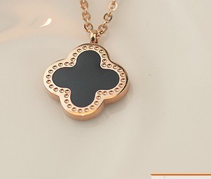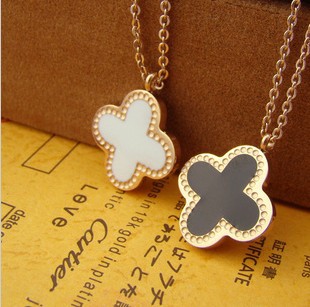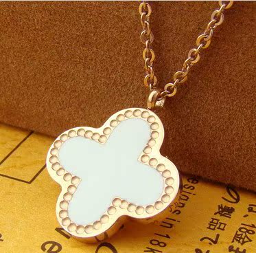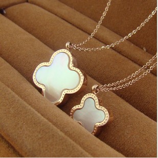 批发钛钢玫瑰金四叶草贝壳项链项链批发