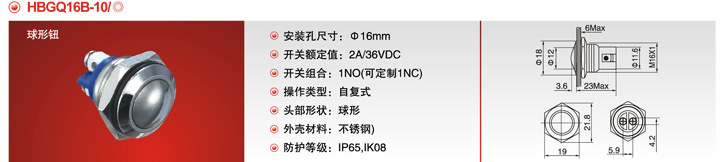 温州按钮批发 球形钮 金属按钮 HBGQ16B-10