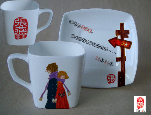 百姓坊私家定制情侣杯依靠 创意情侣杯 DIY杯子 姓氏杯碟