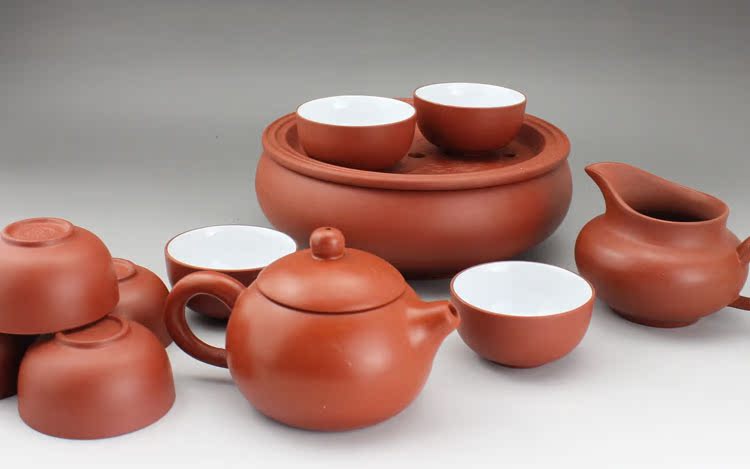 紫来顺紫砂壶紫砂茶具功夫套装红色茶盘十一件套